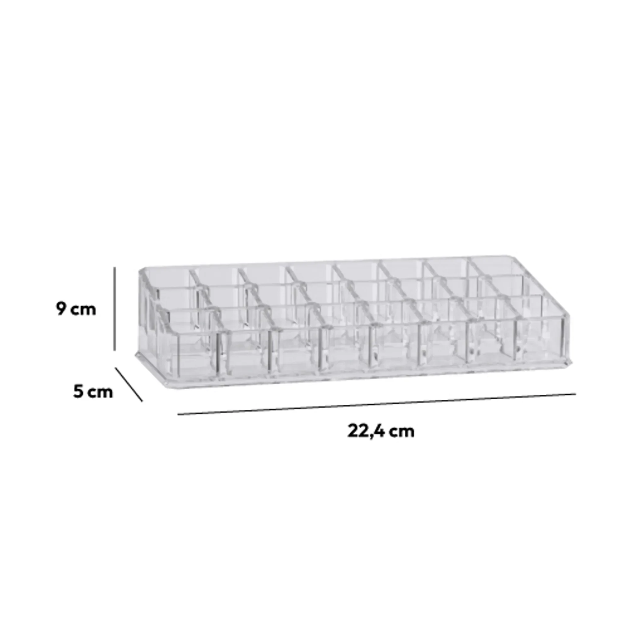 Der Make-up Lippenstift Organizer "Selena" von 5five Simply Smart bietet 24 Fächer und ermöglicht die übersichtliche Aufbewahrung von Lippenstiften, Nagellack, Mascara, Pinseln und weiteren Kosmetika.