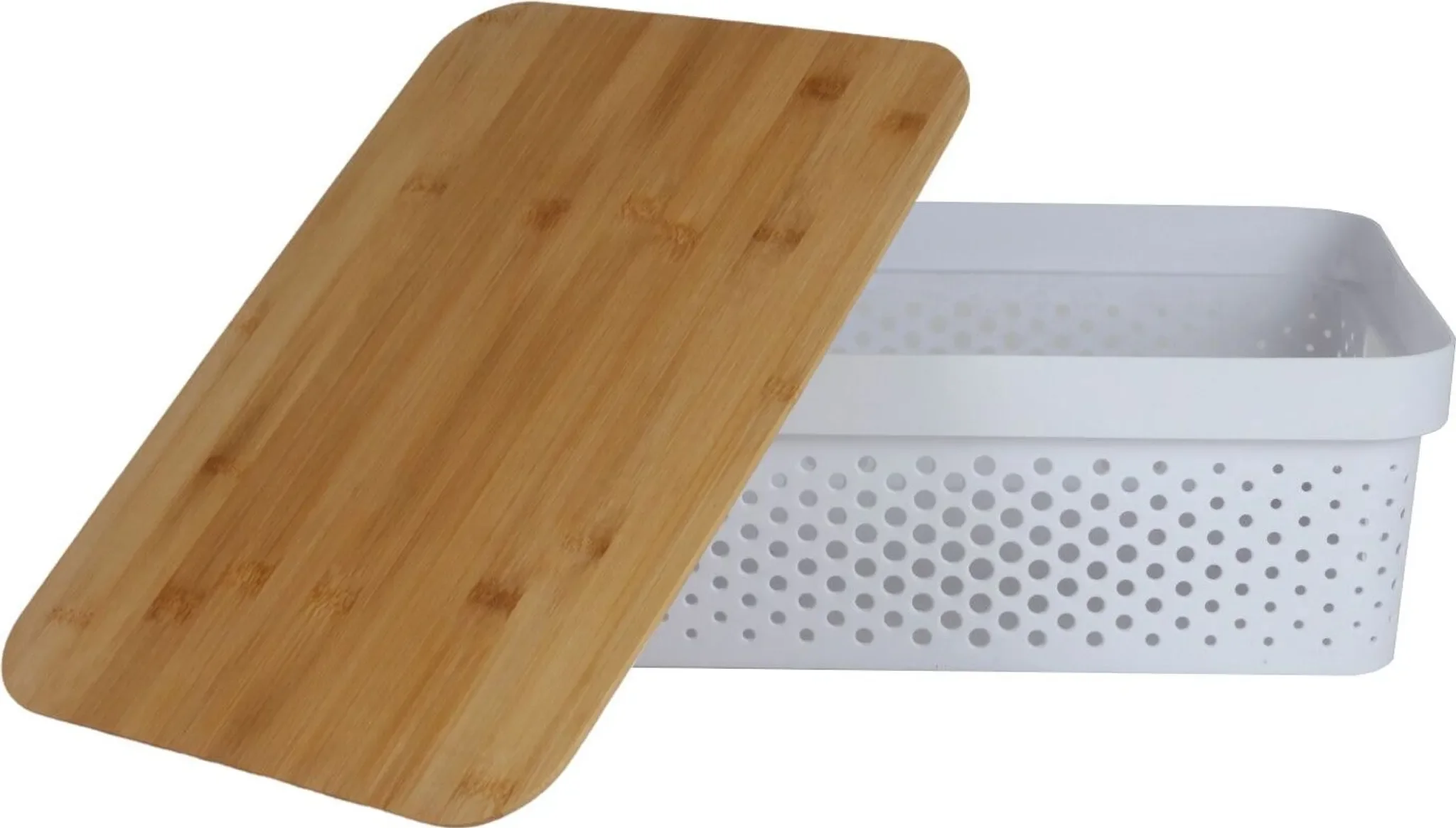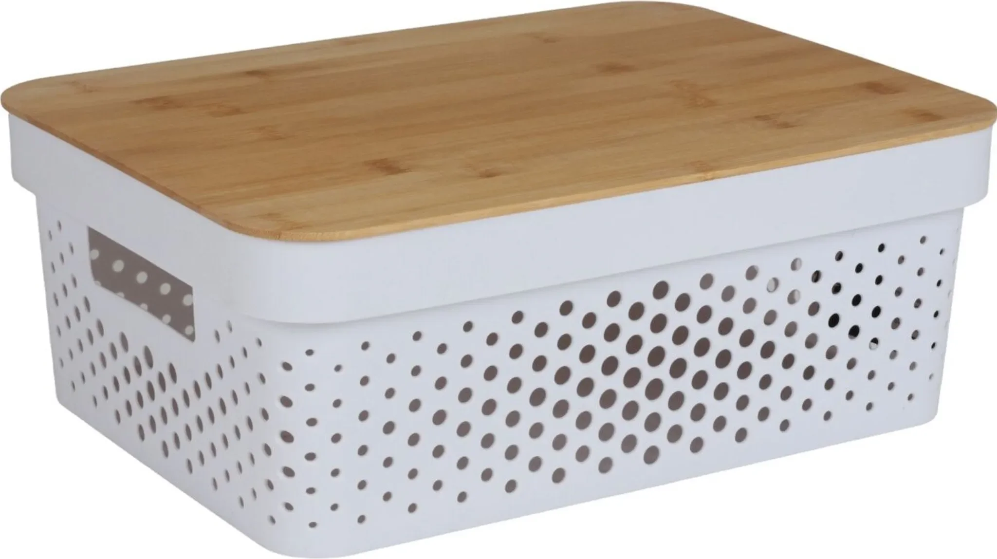 Aufbewahrungsbox mit Bambusdeckel – 11 L, Weiß