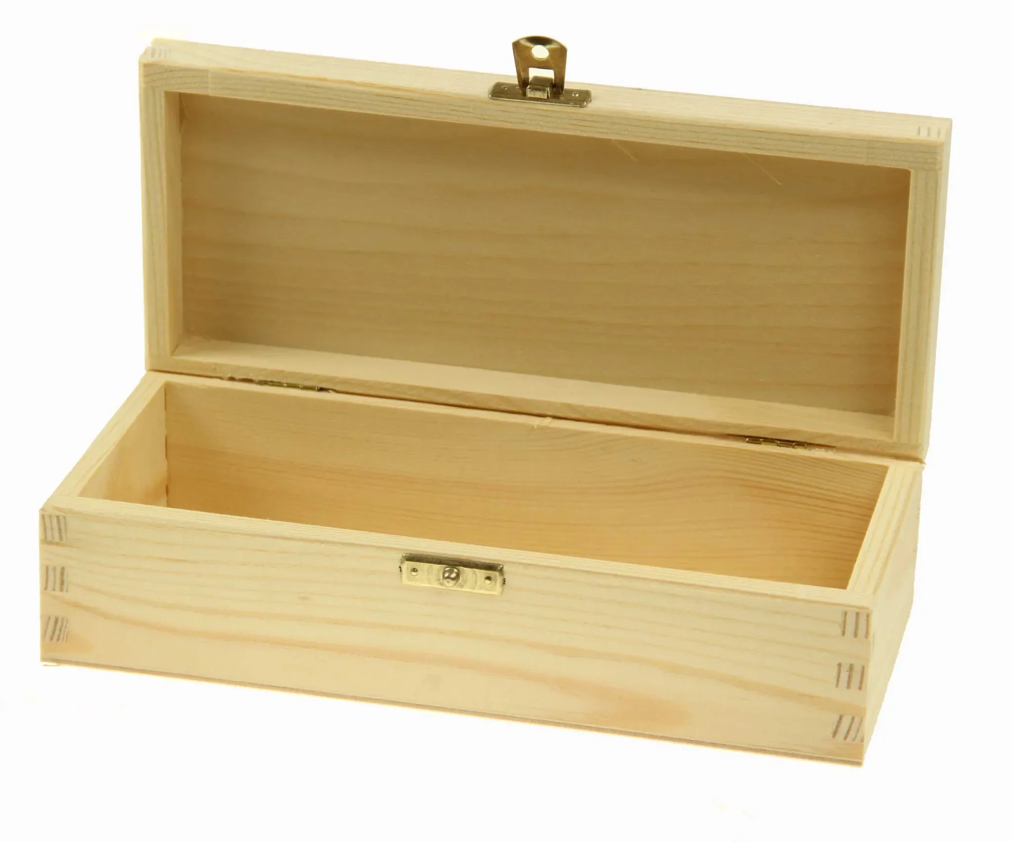 Aufbewahrungskiste aus Kiefernholz – Holz Kästchen mit Deckel und Clipverschluss