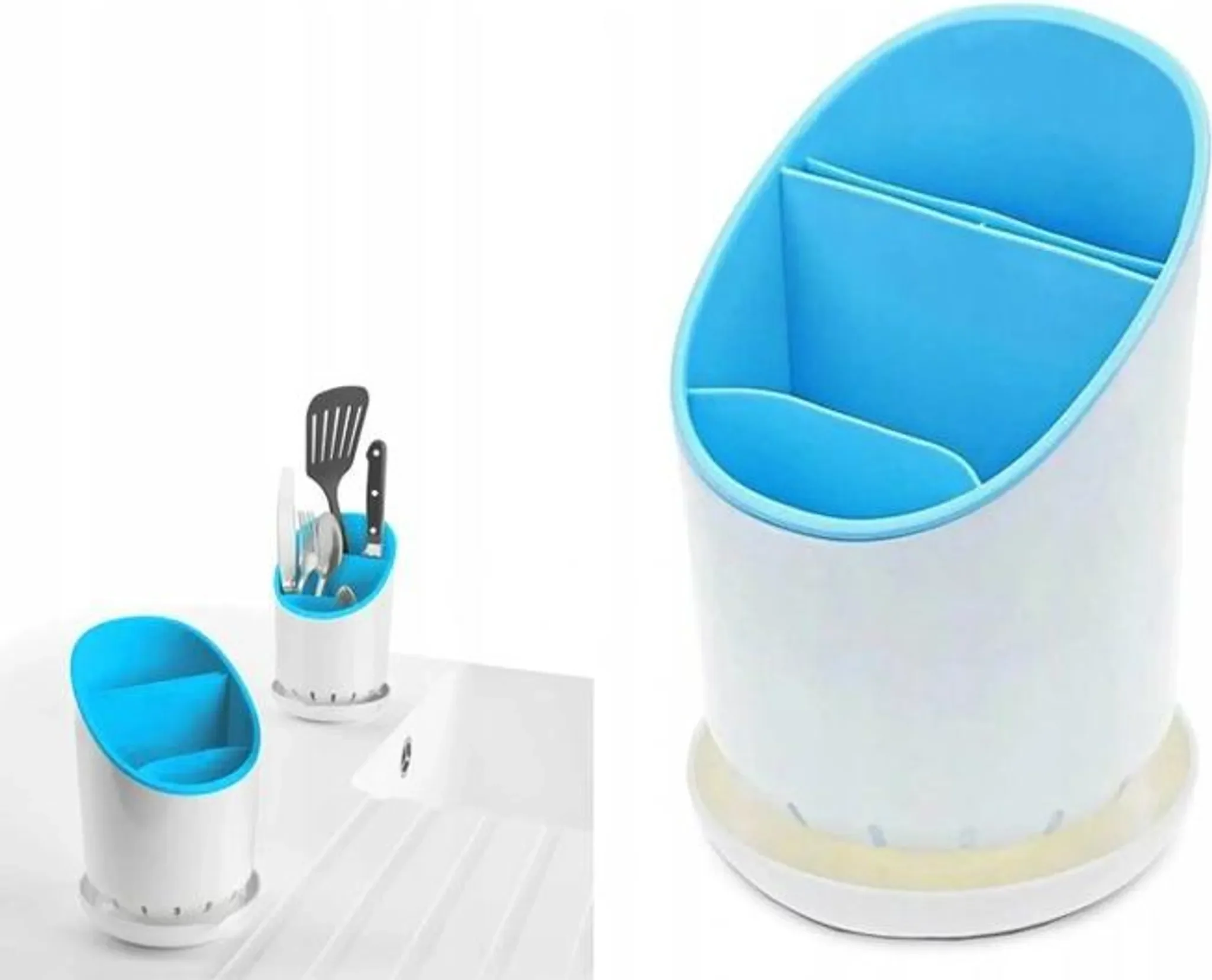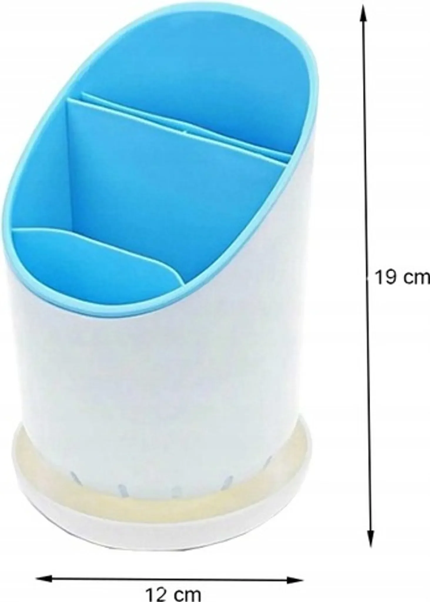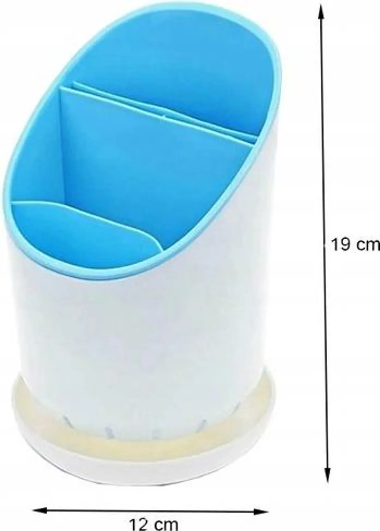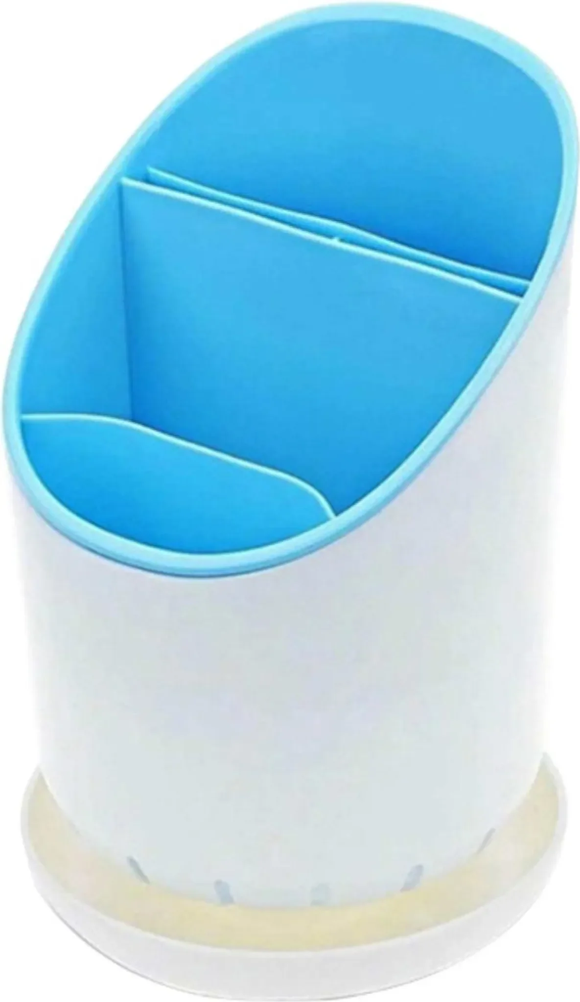 Dieser Küchenorganizer in Blau ist ideal zur Aufbewahrung von abgewaschenem Besteck und anderen Küchenutensilien. Das Hauptfach ist in drei Abschnitte unterteilt, sodass ähnliche Gegenstände übersichtlich gruppiert werden können.