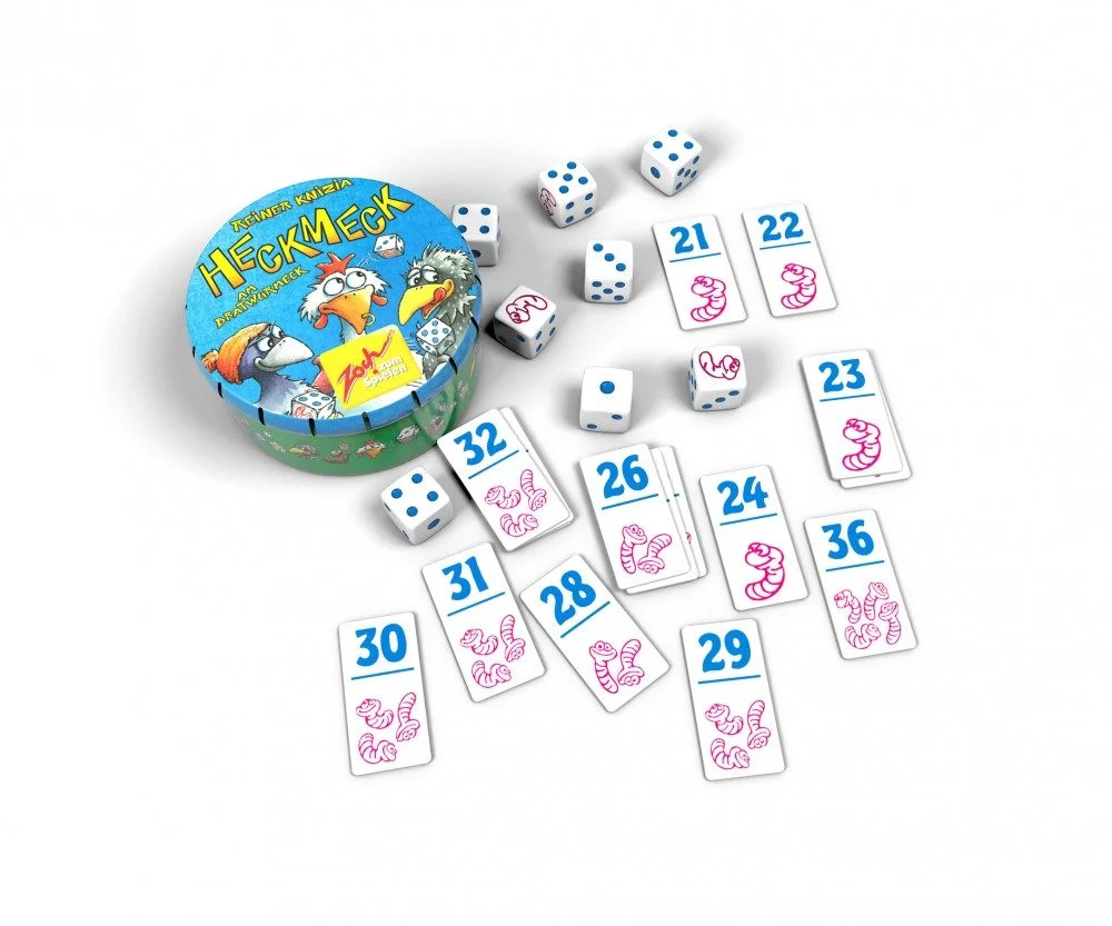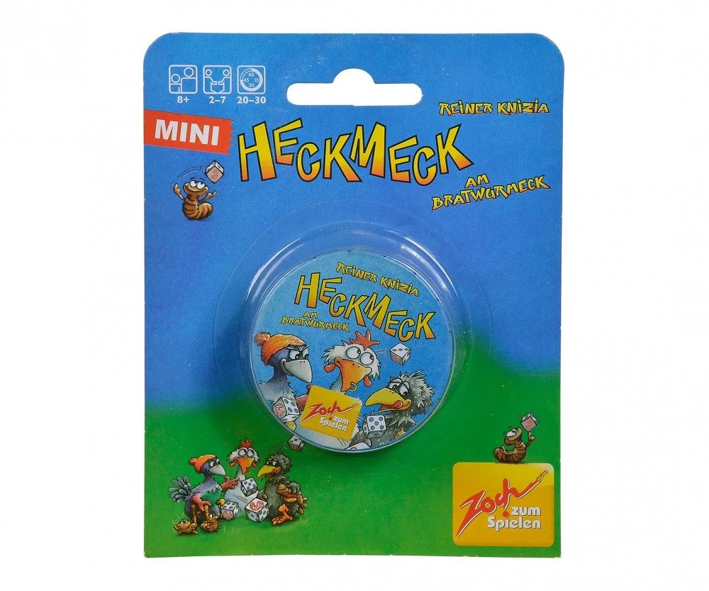 Mini Heckmeck am Bratwurmeck bringt den beliebten Würfelklassiker im praktischen Metalldöschen auf den Tisch. In der Spielmitte liegen unterschiedlich wertvolle Bratwurmportionen, die von cleveren Hühnern mit Würfelgeschick erobert werden wollen.